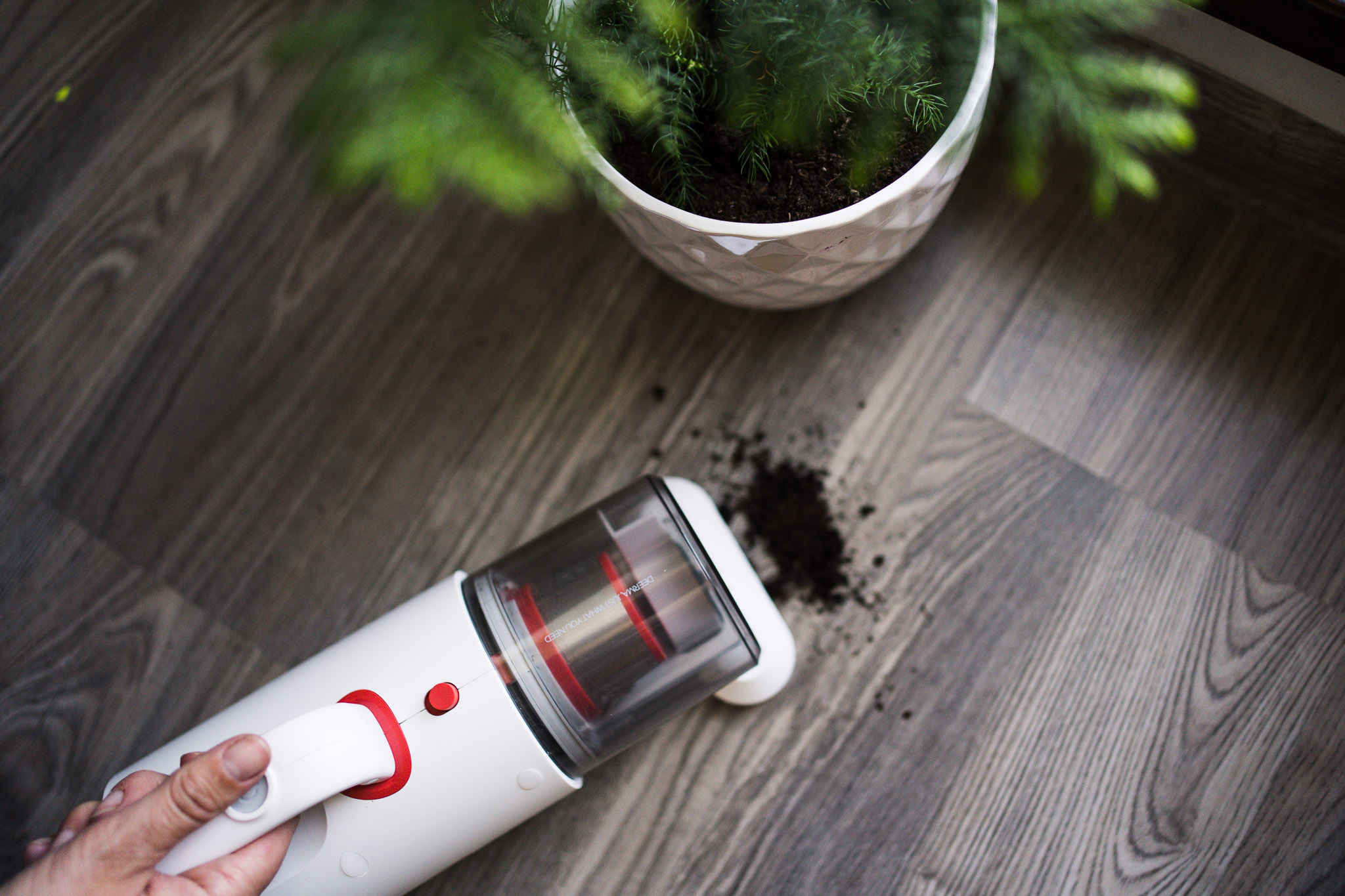 Posiadasz kwiatki w domu? Jeśli tak, to pewnie nie raz zdarzyło się, że ziemia wylądowała na podłodze. I tutaj rewelacyjnie sprawdza się szeroka szczotka, która błyskawicznie wciągnie ziemię. Dużo łatwiej jest mi użyć małego poręcznego odkurzacza niż wyciągać normalny, który posiadam w domu.